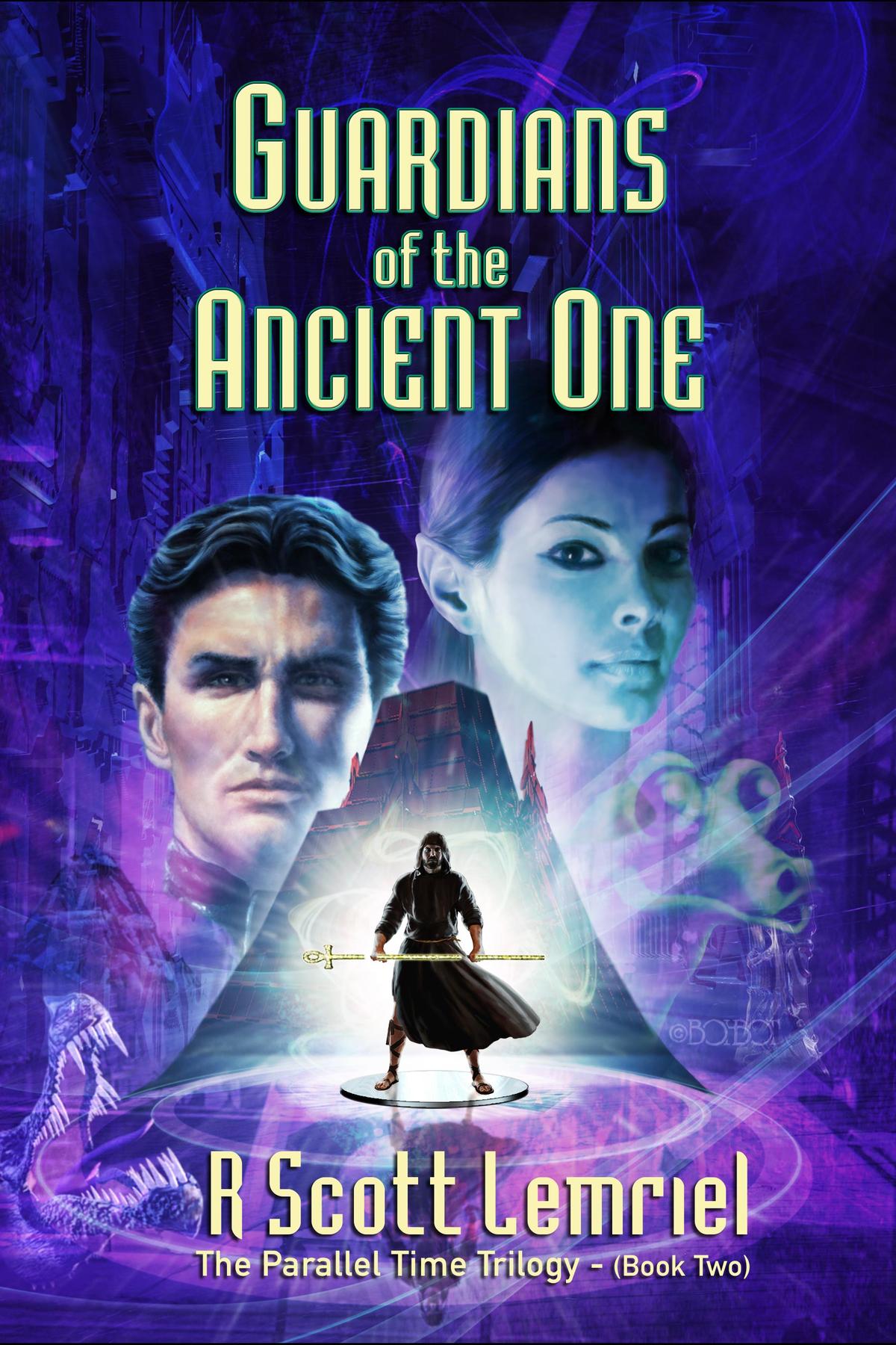 Guardians of The Ancient One (book two of The Parallel Time Trilogy), journeys further into the ongoing struggle between the diabolical extraterrestrial human Sen Dar's attempts to dominate Earth, defeat the Galactic Interdimensional Alliance of Free World, take control of the galaxy, and the replace the 'Source' behind and supporting all creation known as 'Prime Creator' or 'The Ancient One' with himself. Captain Kalem and Mayleena experience a most rarified marriage that takes place on planet Oceana before The Ancient One itself. Their bliss is drastically interrupted by the covert actions of Sen Dar's continuing growing occult powers, as he misused the stolen Emerald Doorway Matrix crystal of The Ancient One. Master Ra Mu & his fellow Guardian Master Teachers must put Captain Kalem, Mayleena, and their Dren friend Etta through a very special training in 'The Cave of Fears' to prepare them to be able to confront Sen Dar's continuing misuse of the stolen mystic crystal of The Ancient One he possesses.