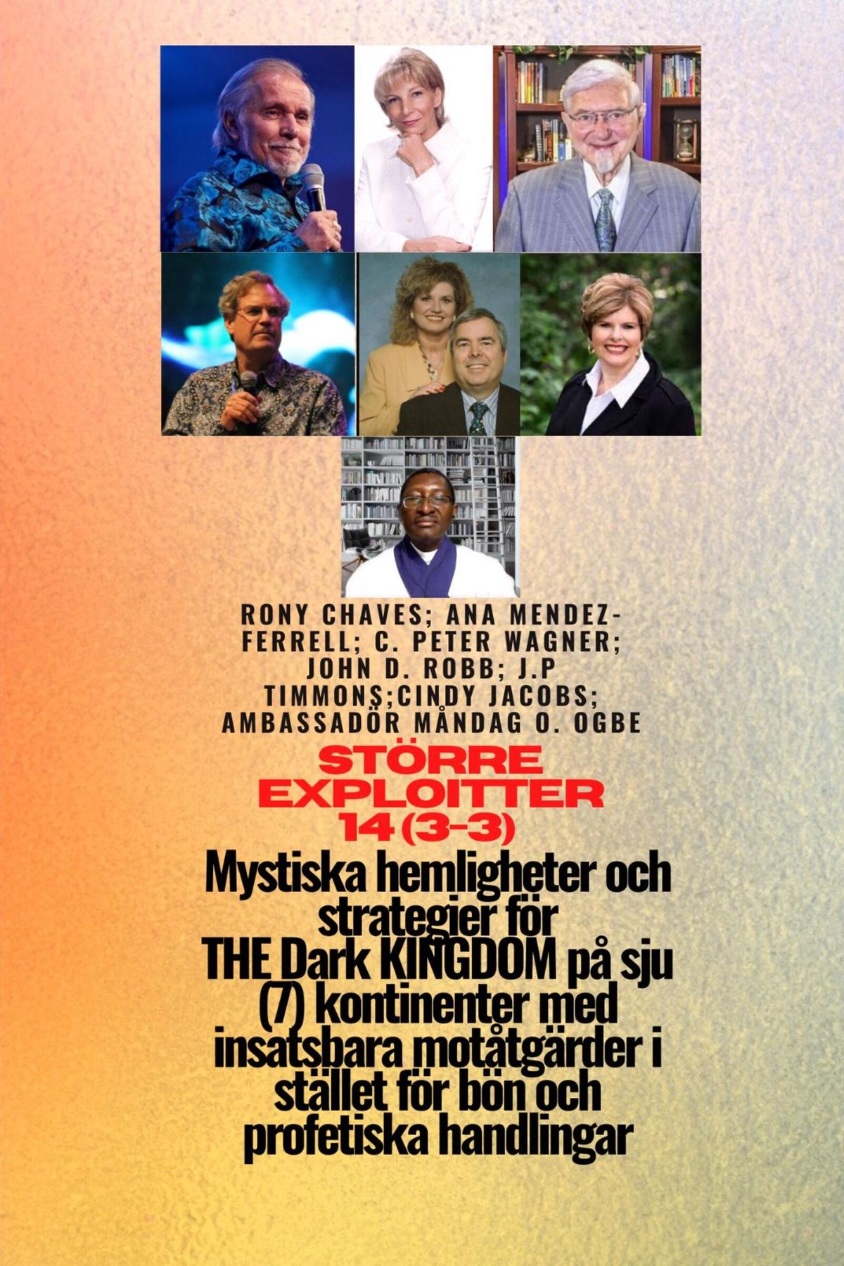 Greater Exploits 14 (3-3) är en fortsättning på Greater Exploits 13 med mer detaljer, med fokus på MYSTERIUS CRERETS and Strategies OF THE Dark KINGDOM på sju (7) kontinenter med utplacerbara motåtgärder i stället för bön och profetiska handlingar av Rony Chaves, Dr. C. Peter Wagner, Cindy Jacobs, John D. Robb, Ana Mendez-Ferrell, J.P. TIMMONS och Amb. Måndag O. Ogbe, dessa Herrens tjänare har använts mäktigt i dessa tider över de sju kontinenterna genom att använda bibliska strategier för att kämpa med mörkrets krafter - Detta är en utrustande serie för Kristi kropp.