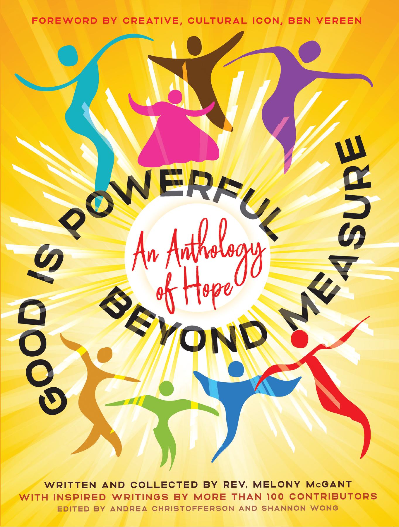 GOOD IS POWERFUL BEYOND MEASURE written and collected by Rev. Melony McGant with a Foreword by Ben Vereen and a Special Tribute Section to Betty J. Tilman. Edited by Andrea Christofferson and Shannon Wong. The book is a collective visioning, community and bridgebuilding project with a goal to share a light on the goodness of humanity and nurture the concept of Compassion, Cooperation and Legacy.